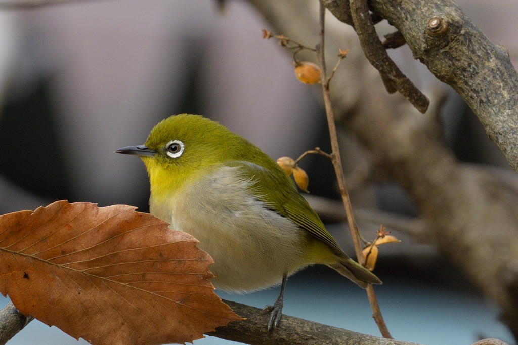 一枚目は千葉の海辺の公園で見つけたメジロ。そんなに緑が多い場所ではありませんが、海辺でもいるんですね。