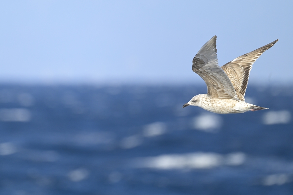 記録を見ると宮城以南では10月5日~4月11日の間で見ています。5月は皆青森、北海道の記録です。5月の記録は色目的にセグロカモメだろうという感じで、もしかするとオオセグロカモメと見間違っている可能性もあるかなと思っています。アップの絵がないので、クチバシの太さによる判別も微妙で、自信のほどは60%くらいでしょうか。