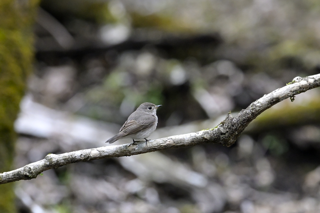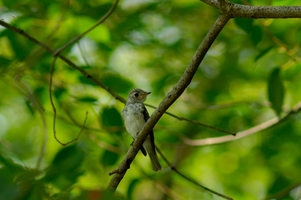 コサメビタキはぐぜるような小声のさえずりしかしないため、目視するまでは存在に気づかないことが多いです。そもそも地味ですし、ふと気づけば目の前に現れていて、レンズを向けるのに毎回慌てさせられます。