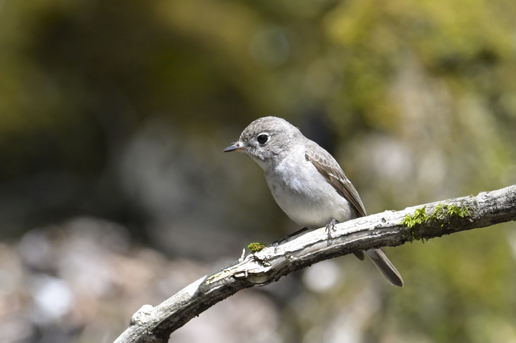 コサメビタキは英名でブラウン フライキャッチャーと呼ばれる、虫取り上手なヒタキ科の小鳥です。枝に止まってエサとなる虫が飛んで来たら、ひらひらと飛んで餌を追います。色目は背中がグレーで、のどから胸は白色をしています。フライキャッチャーの仲間であるキビタキやオオルリと違い、雌雄同色で地味な小鳥です。