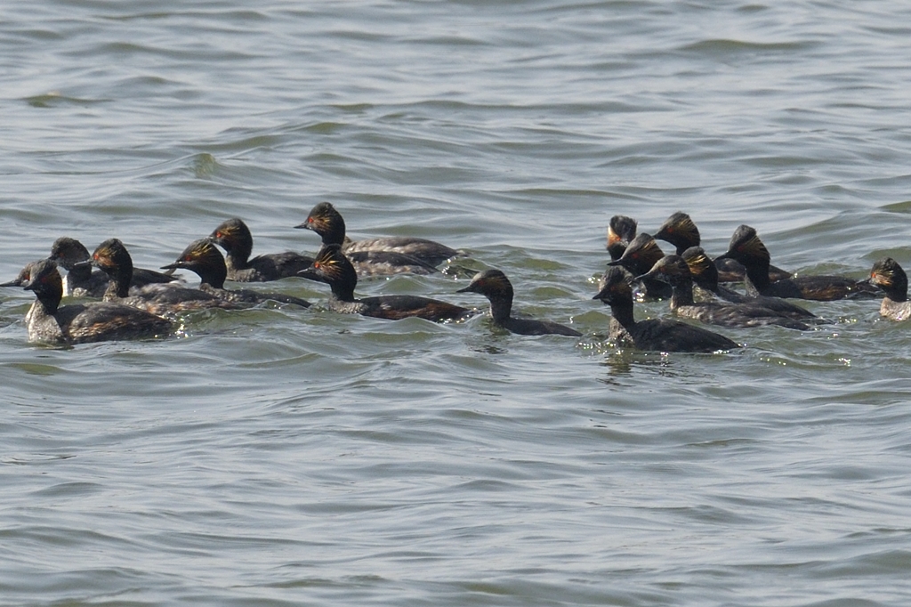 「ハジロカイツブリ 冬羽の群れ」 クリックで拡大します。