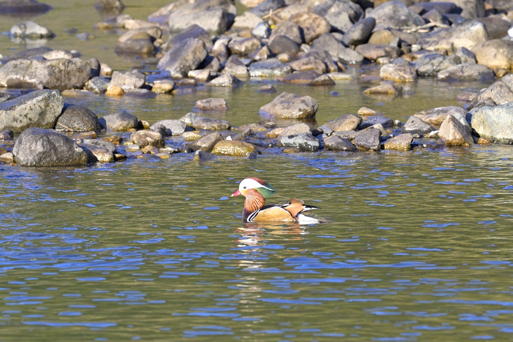 はたして、正体不明の海鳥に見えたのはオシドリの ♂ でした。。。がっくし。。緊張が解けて思わず脱力してしまいました。