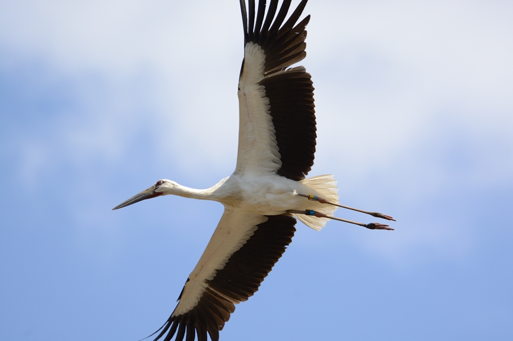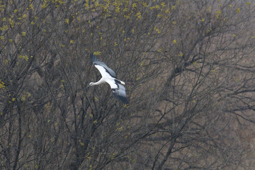 「コウノトリ、コウノトリの飛翔」 クリックで拡大します。