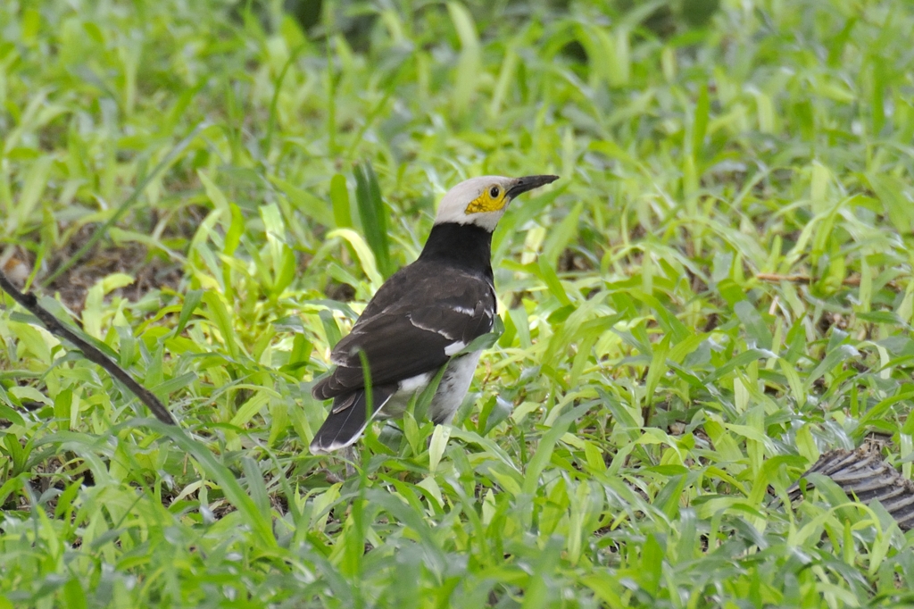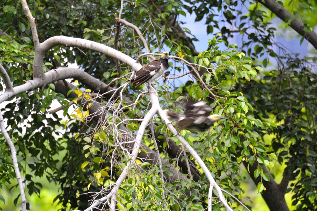 顔をよく見ると頬のあたりに黄色い地肌が見えていて、このあたりは同じ公園で見たインドハッカとよく似ているため、やはりムクドリの仲間なんだとわかりますね。