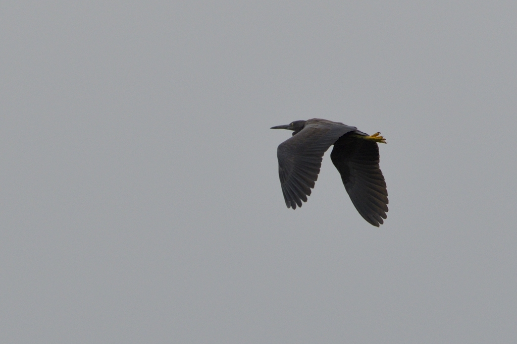 名前の通り全身が黒いサギなので、海岸沿いに目の前を飛んでくれても「なんだ、またウーさんかよ」と思って一瞬スルーしてしまいます。「でもちょっと待てよ。何か違うぞ!?」と気づいたときはもう遅く、既に後ろ姿になっている。というパターンが多い鳥でもあります。(私だけでしょうか?)