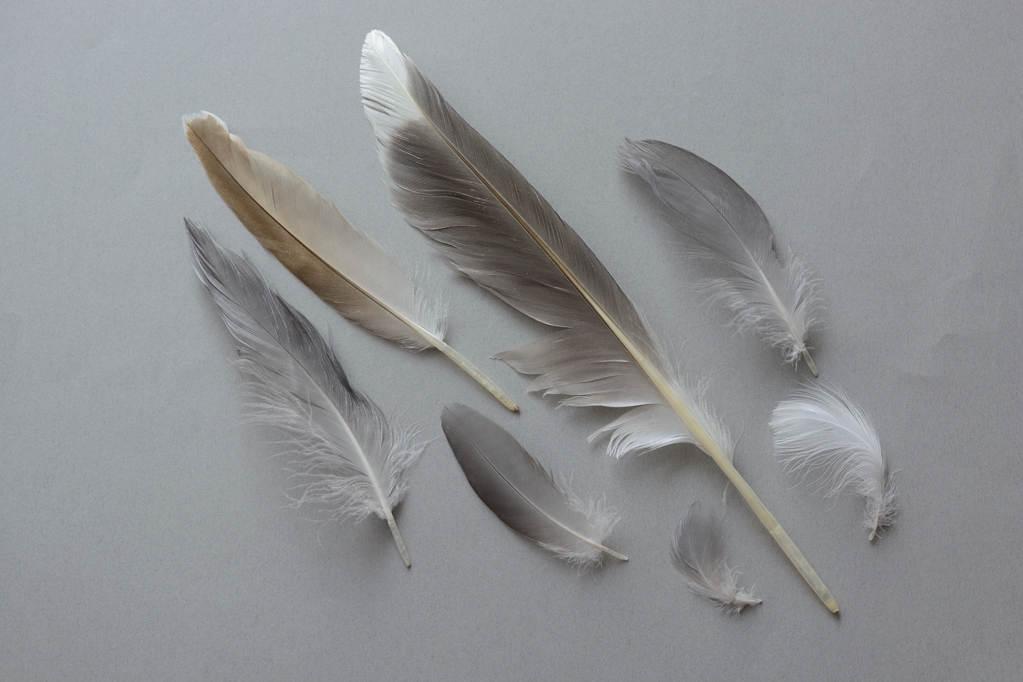 一つ上の羽根を拾ってから丁度一年後、今度は道東でオオセグロの羽根を拾いました。こちらは岬の歩道横にたくさんの羽根が散らかっていたので、ハヤブサかなにかにやられた跡だったのかもしれません。