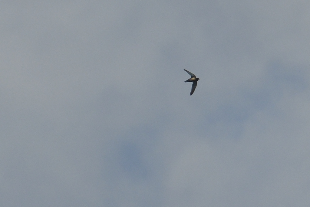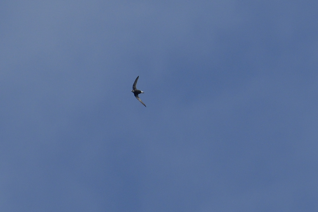 ハリオアマツバメにチャレンジすることもう何度目になるかわかりませんが、やっと姿が分かる程度の絵が残せました。この日は頭上を真っ直ぐ通り過ぎるだけでなく、一度周辺をぐるっと回ってくれたので、何とかカメラが間に合いました。天気も良かったので、この日に限ってはタカを撮る以上に満足感があったのを思い出します。