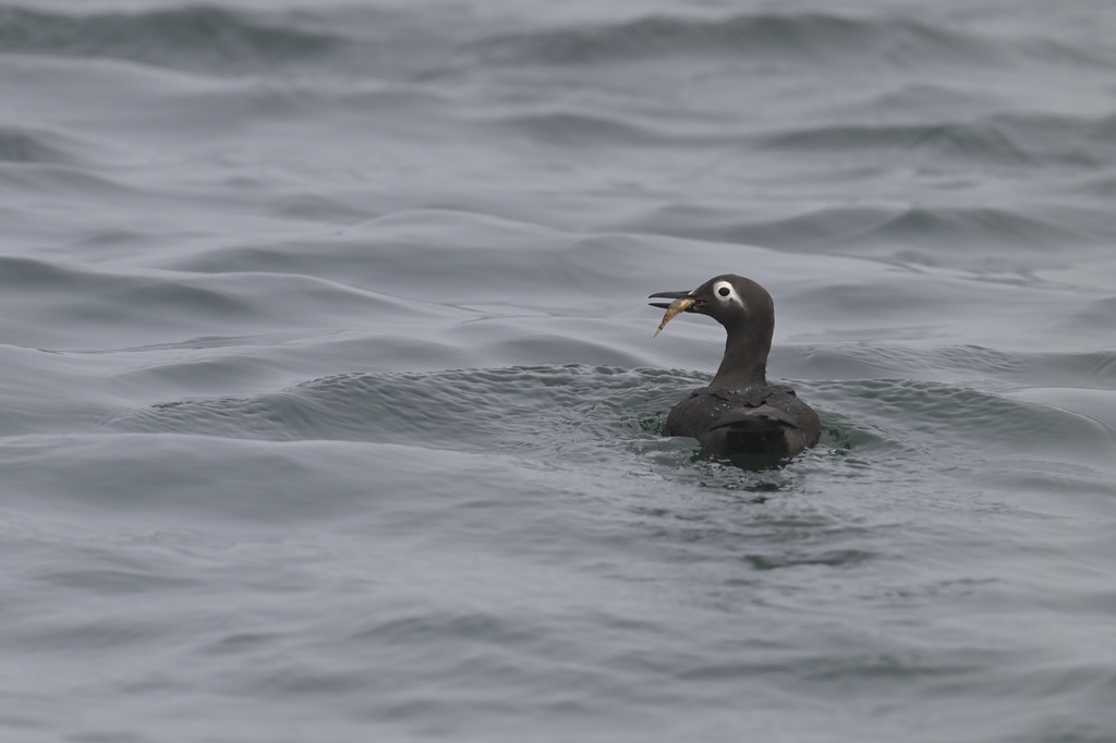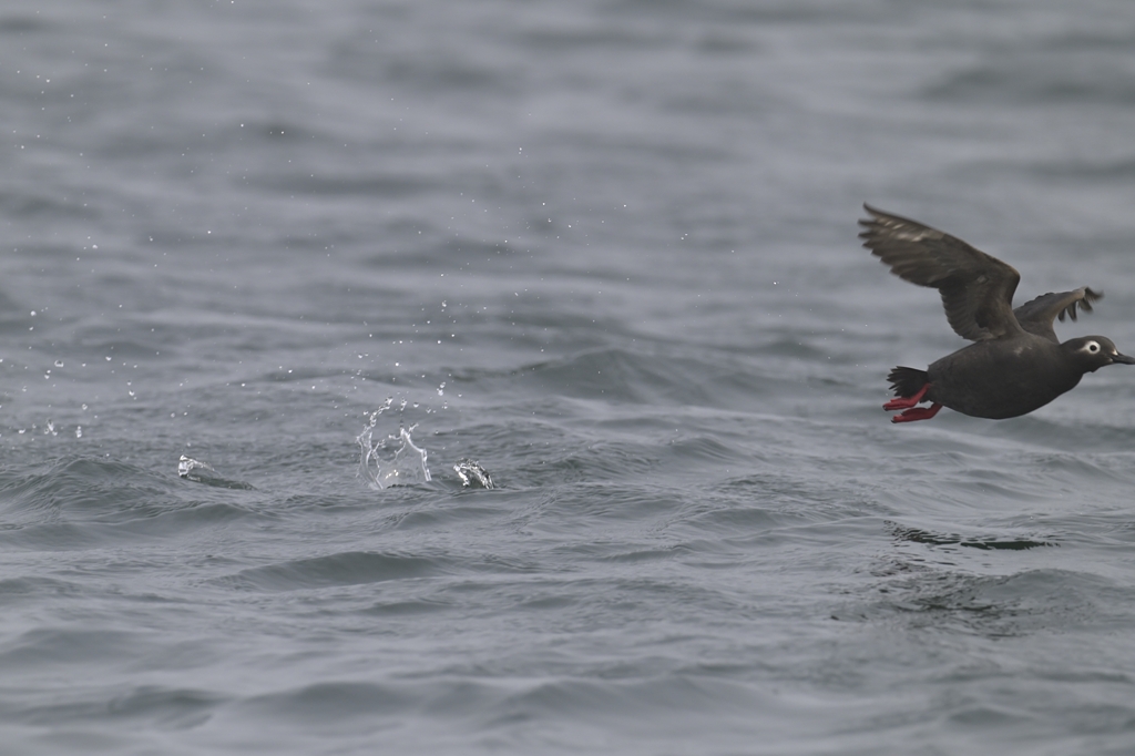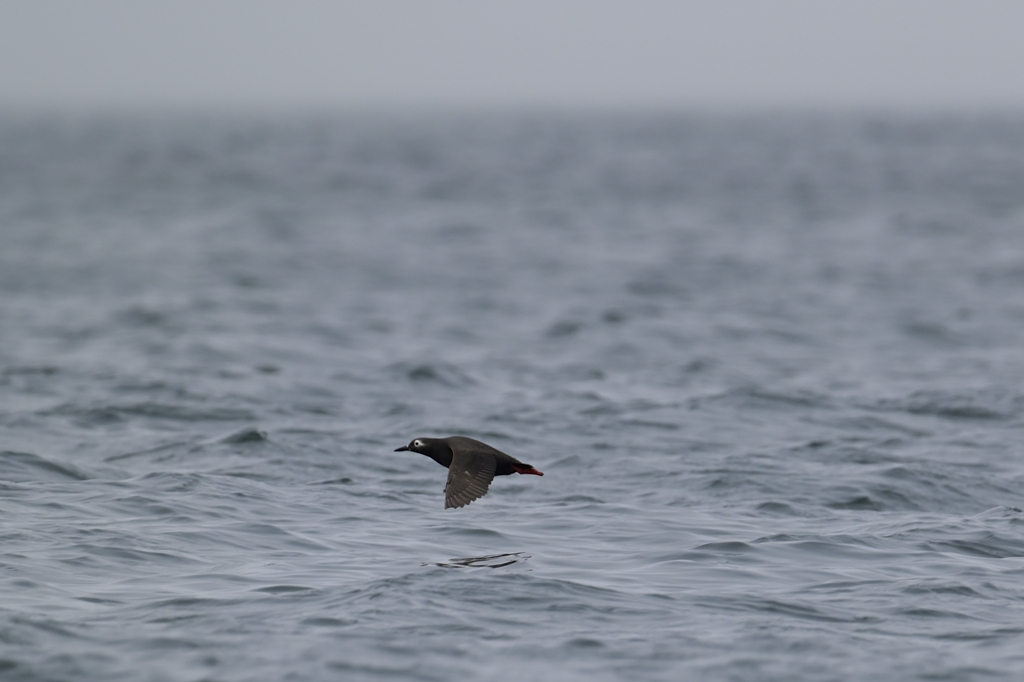 根室の観察クルーズ船に乗って、以前から念願だったケイマフリをしっかり観察することができました。この前日に、知床の大型観光船からもケイマフリを観察できていましたが、写真は証拠写真がやっとでした。どちらの海でもポツンとした単体もしくは2羽程度の集まりで、はっきりとした大きな群れは見ていません。