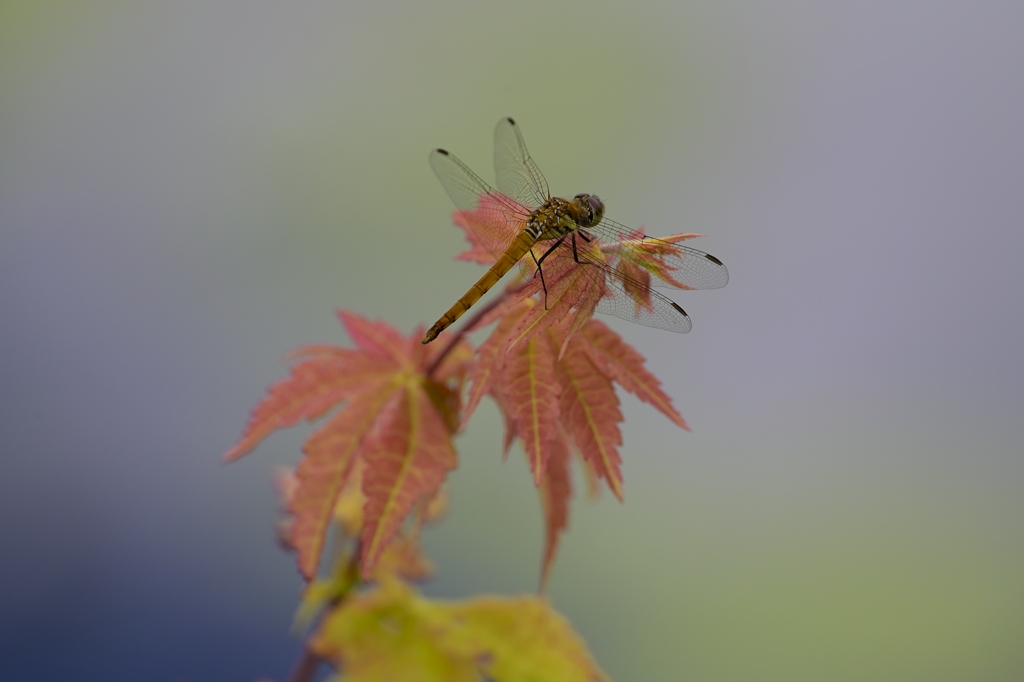 数ある日本のトンボの種の中でも最も華やかなのは先に紹介したチョウトンボではないかと思います。光線の具合で青かったり紫だったりに妖しく輝き見るものを魅了します。一方で自分がこれまで写したトンボの写真で一番のお気に入りは、日本ならどこにでもいて姿も地味なムギワラトンボの一枚だったりします。周囲の景色とマッチした時に美しさが倍増するといいますか、トンボの写真は思った以上に奥深いと感じます。今後も修業を重ねたいと思います。