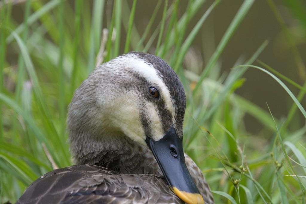 こちらも公園の池にいたカルガモです。公園にいるカルガモは人馴れしているのでアップも写し放題ですね。