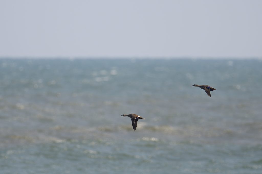 3月の九十九里浜は色々な水鳥が北へ移動する時期です。カルガモは基本的に留鳥ですが、中には繁殖場所に移動するものもいるのでしょうか。外海でもときどきその姿を見ることがあります。