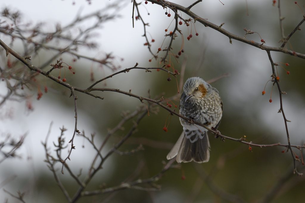 そんなどこにでもいるヒヨドリについて、自分の経験では道北や道東での観察経験がありません。調べてみるときちんと調査がされていて、やはり道北や道東、そして北海道の山地ではあきらかに数が少ないのだそうです。反対に最南端に近い八重山諸島では亜種がたくさんいたので、どうも寒いのが苦手な鳥のようです。