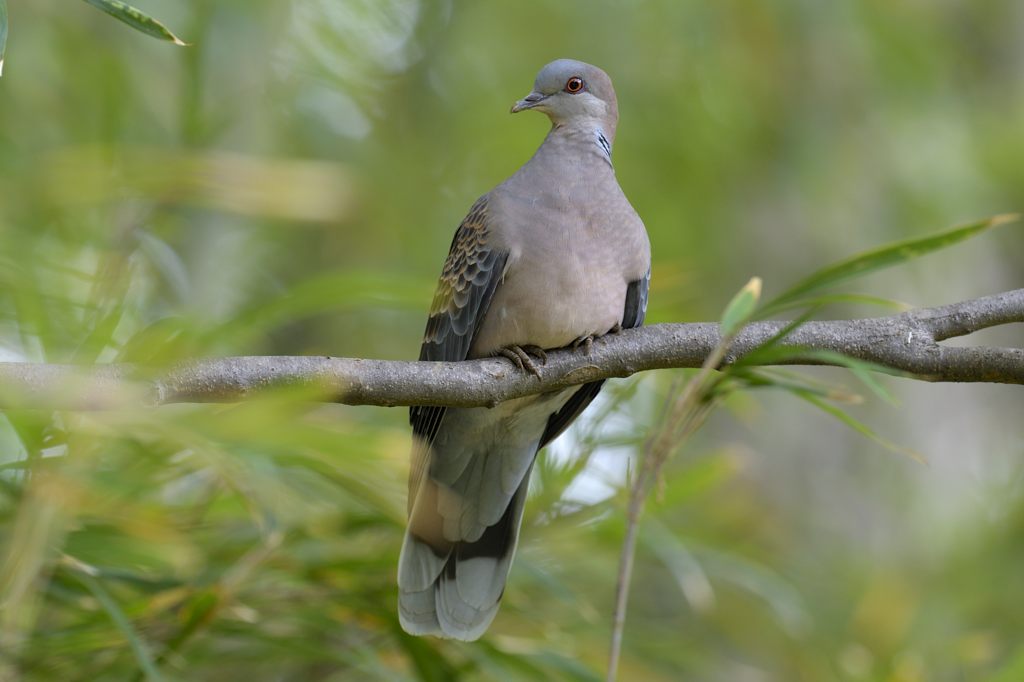 キジバトはドバト(カワラバト)のように町の雑踏までは入り込んできません。ただ町中の公園や里山の人家近くではごく普通に見られる野鳥です。このように簡単に出会えますし、姿色目も地味なハトなので、観賞対象としては人気のある鳥ではありません。しかしよく見てみると、地味な中にも優雅で雅な色目をしていて、実はとてもきれいなハトだとわかります。