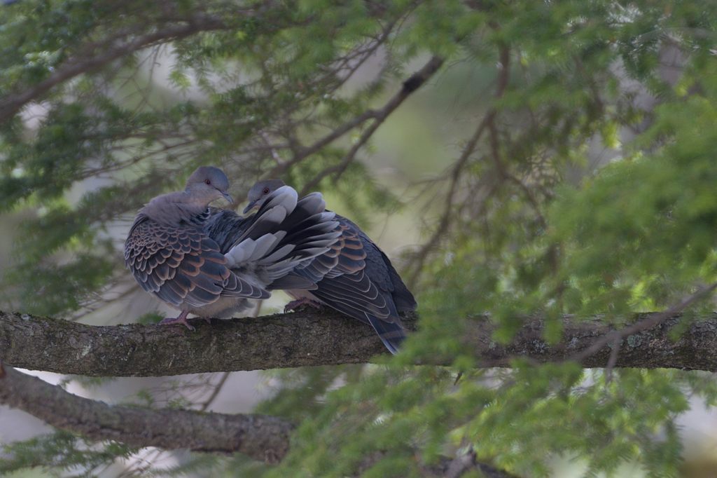 長野の標高1,500m付近の高地で撮ったキジバトのご夫婦。キジバトは低地から亜高山まで広い場所で見られます。