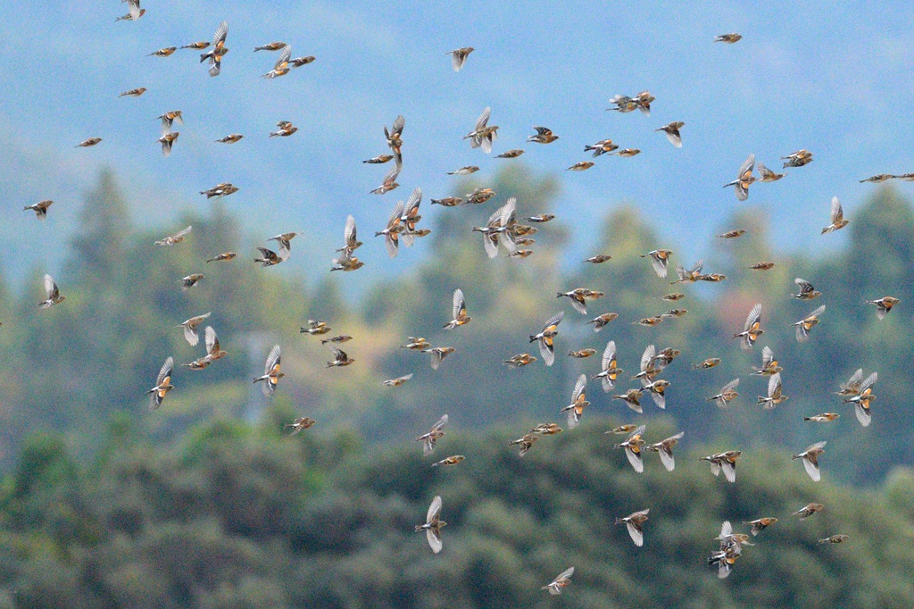 「アトリ 群れの飛翔」 クリックで拡大します。