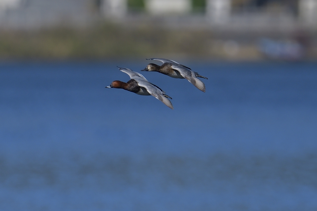 琵琶湖はたくさんのカモの種がいるので、撮っているときはまだ周囲が薄す暗いこともあって、飛んでいるのが何の群なのかはよくわかっていませんでした。あとで記録を拡大して確認するとホシハジロだったとわかりました。