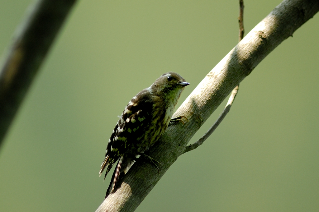 福山在住の頃の思い出です。1990年ごろでしたか、家の周りを散歩していたとき、近くの木から「コツコツコツ」という小さく乾いた音が耳に入りました。まだ鳥見を初めていない頃でしたし、キツツキなどは一般人から縁遠い山中の鳥だと信じきっていた私です。「まじでキツツキがおるの?」と目を凝らして頭上を見ると、確かに茶色くて小さな鳥が、動きながら音を出していました。「まさか自分の家のすぐ近くの小山でキツツキが見られるなんて。。」ととても感動したことを今も思い出します。