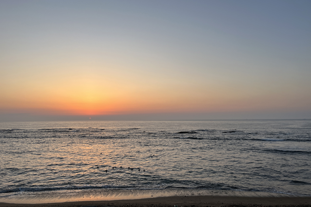 丁度夜明けに海にたどり着いたので、とりあえず夜明けの海を撮ろうと思ったら、たまたま足元にヒドリガモがいてくれました。まだ寒い初春の旅の記念写真です。