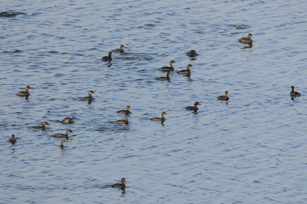 岡山県の汽水の池で見つけたカイツブリの群れです。