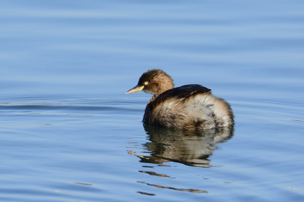 千葉の汽水域で見つけたカイツブリ。尾羽がないように見えますが、実際には小さく短い尾羽があるそうです。