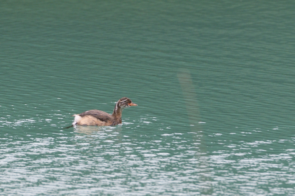裏磐梯の五色沼を散策していて見つけたカイツブリの若鳥です。この年に生まれたばかりのお子様だと思われ、まだ幼鳥の面影が残ります。