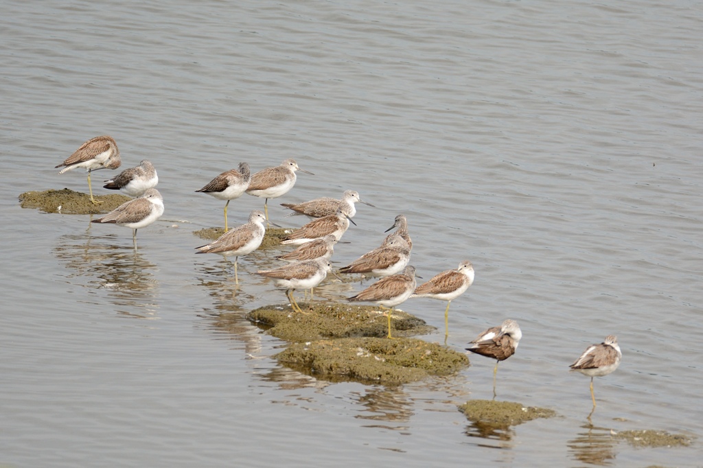 「アオアシシギ 冬羽の群れ」 クリックで拡大します。