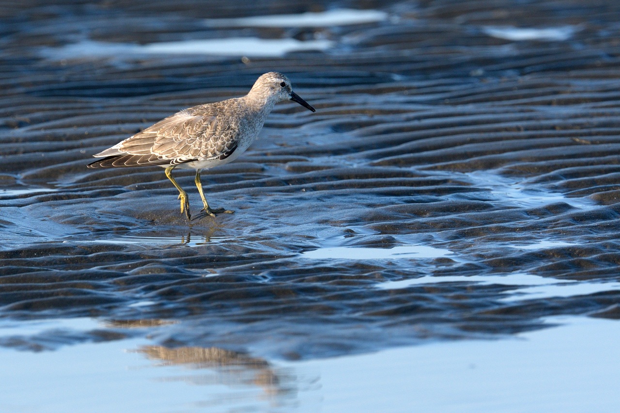 一つ話題を。これは私の七不思議のひとつでもありますが、シギチが数多く現れることで有名な東京湾の船橋三番瀬干潟で、私はこのアオアシシギを見たことがありません。例えば九州有明の大きな大きな東よか干潟や福山市の小さな干潟では、飛来時期こそズレはあっても、アオアシシギ、ハマシギ、キアシシギ、ソリハシシギなどを同じ浜で見ていました。ところが東京湾の三番瀬においてのみ、他は皆いるのにアオアシシギだけとんと見ないのです。そもそも三番瀬からごく近い場所では見ているので、アオアシシギもシギチでにぎわう三番瀬に気づかないわけないはず。おそらくアオアシシギにとっては、三番瀬の環境が何かしら好みではないのでしょうね。一度本人に「何が気に入らないの?」と聞いてみたい気がします。