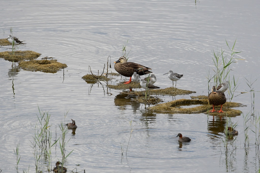 2020年から年に何度か仕事で福山方面に出張しています。このときの出張は半月以上の滞在となったため、現地の足が欲しくて横浜からバイクで出かけておきました。作戦が実って7年ぶりに笠岡でアオアシシギを観察することができました。群れをよく見ると親と幼鳥が混じっているようですね。