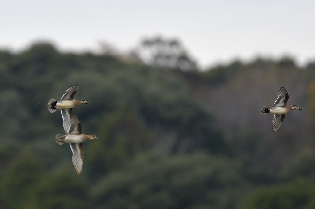千葉の池にハクチョウやカモを見に行って、彼らの飛翔絵を撮っていたところ偶然トモエガモの群れが撮れていました。ラッキーでした。