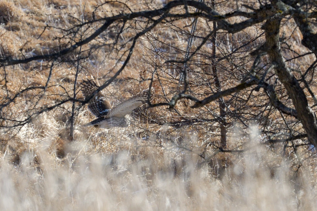 この日は現地に到着するのが遅れてしまい、かっこいい飛翔絵を撮るチャンスを逃してしまいました。私が着く少し前までは二羽のフクロウが空中でバトルをしていたのだとか。いつかきちんとしたフクロウの飛翔絵を撮りたいです。