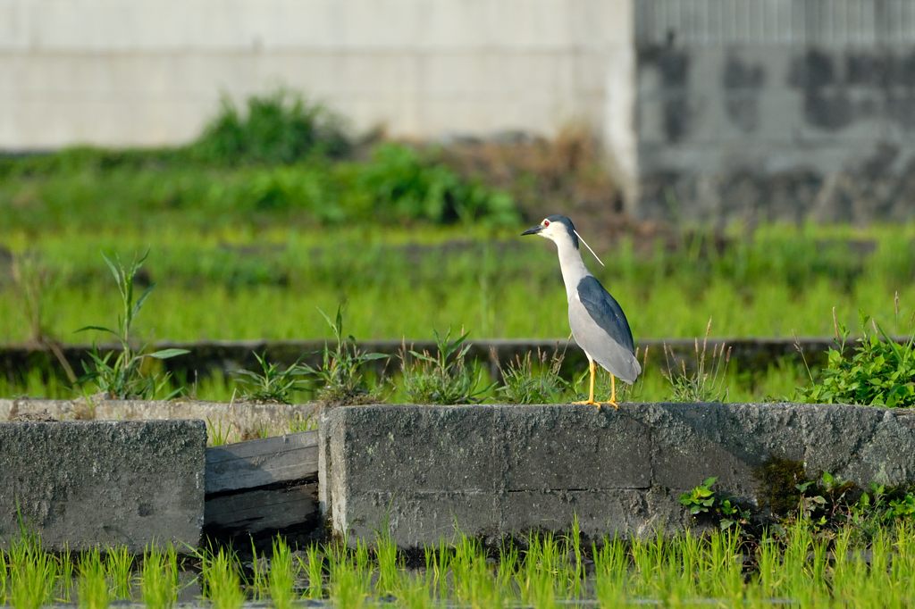 車が我が家に近づいて来ますと、景色はしんと静まり返った田園風景に替わります。田舎の夜道なもので街灯などはなく、前方の頼りは車のヘッドライトだけです。田んぼの側溝沿いに細く曲がりくねった道を外さぬよう、目前を注視しつつそろそろと進んでいると、ハンドルを切った先に突然仁王立ちしたゴイサギが出現!! お互いの目と目が合って、「うおっ!」とびっくりしあったことがありました。