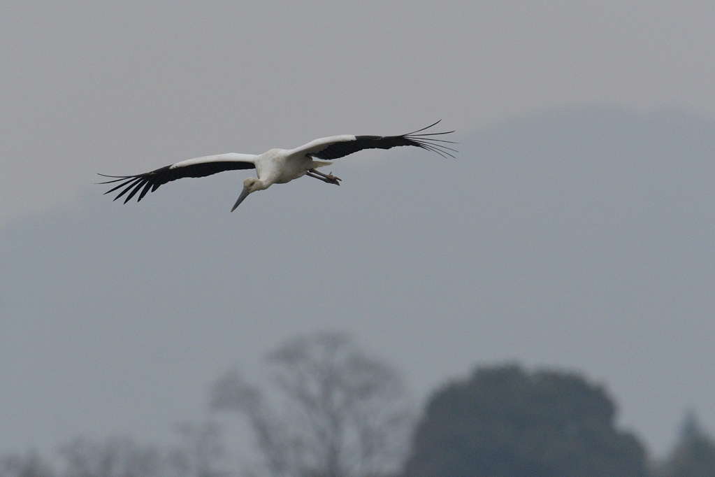 「コウノトリ、コウノトリの飛翔」 クリックで拡大します。