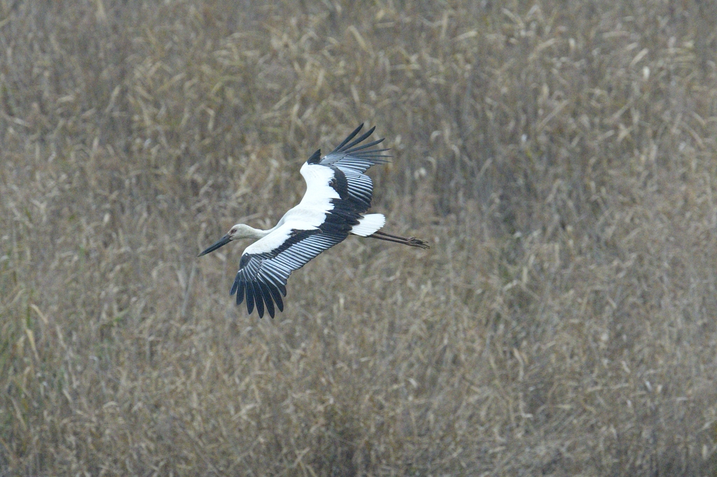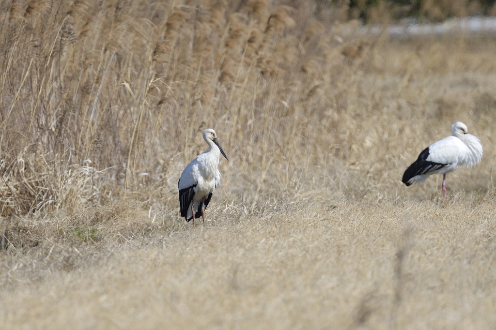 関東北部の湿地へ葦原の猛禽を観察しに行ったところ、思いがけずコウノトリに出会うことができました。豊岡でのコウノトリ観察から既に5年の年月が経っていましたが、まだ関東で野生下のコウノトリが見られるとは思っていなかったので、この日の出会いにはとても驚かされ、感動したことを今も思い出します。