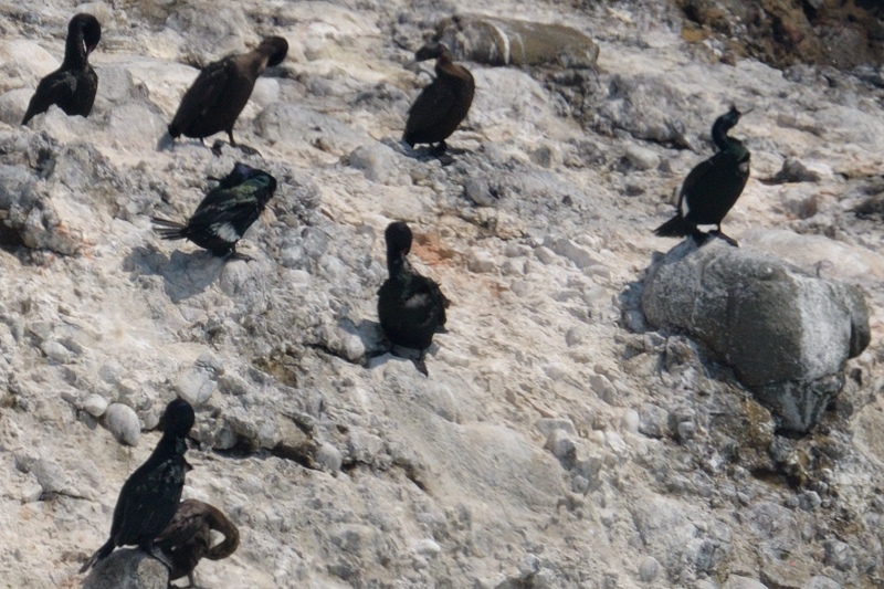 「霧多布のヒメウ 群れの休憩、拡大、群れの飛翔」 クリックで拡大します。