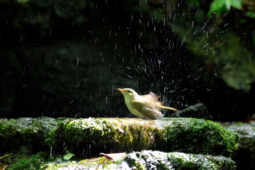 富士山周辺の水場で小鳥の水浴びを観察していたところ、センダイムシクイがやってきました。
