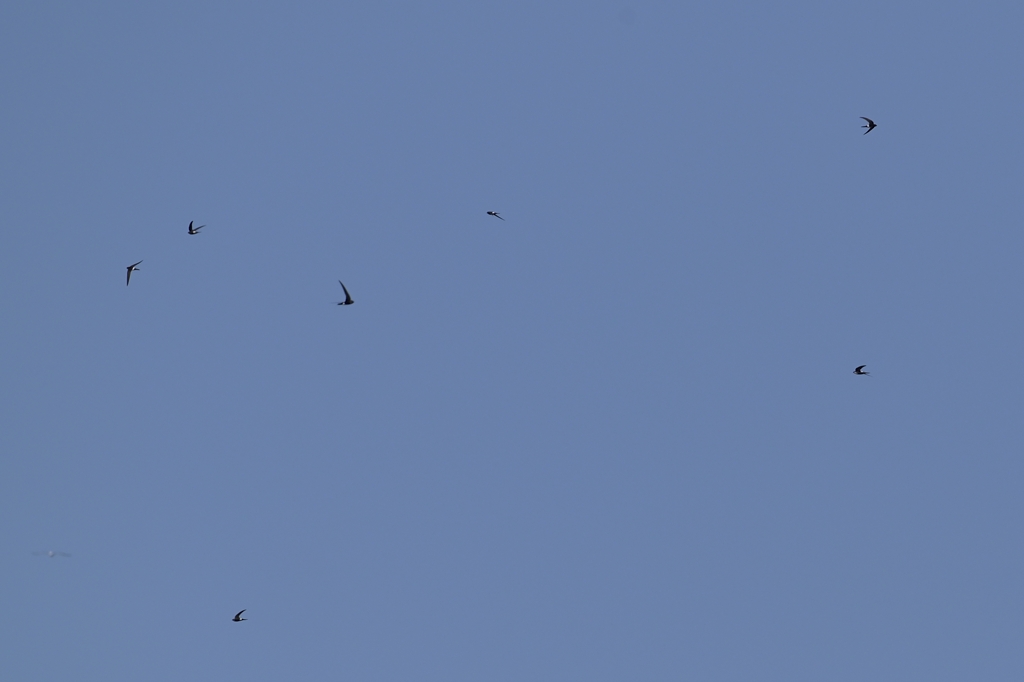 こちらは道東の観光フェリーに乗ったとき、頭上を舞っていたアマツバメを撮った絵です。船の屋上デッキから撮っているので、やや近い距離で見られました。