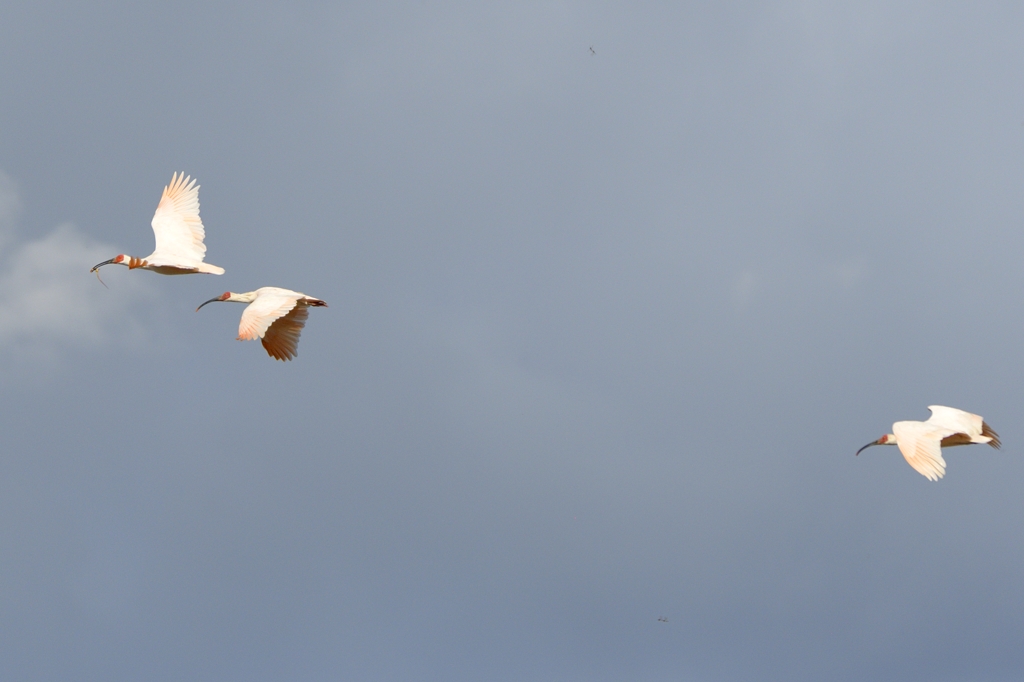 もう薄暗い時間且つ拡大トリミングしてあるので、絵が少々荒いですが、初めて野生下で見たトキたちに感動した瞬間でした。感謝。