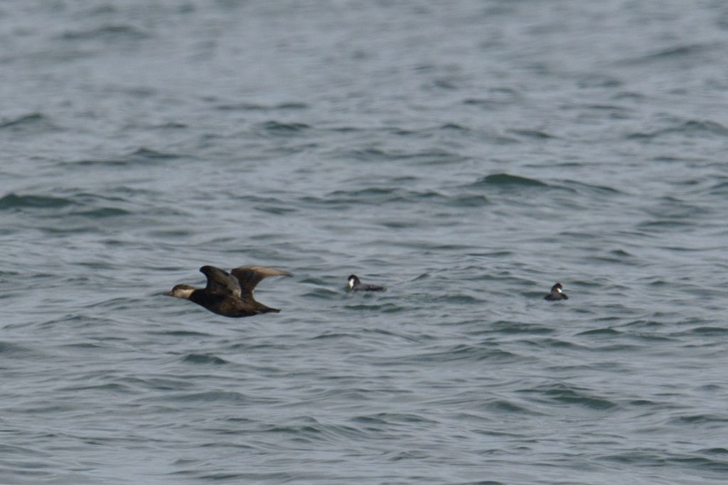 いずれも北国の船上で見ています。見るのはいつも2~3羽くらいの少数です。黒い影がポツンと波の上に漂っている感じですから、常に臨戦態勢で探すべし!でしょうか。。
