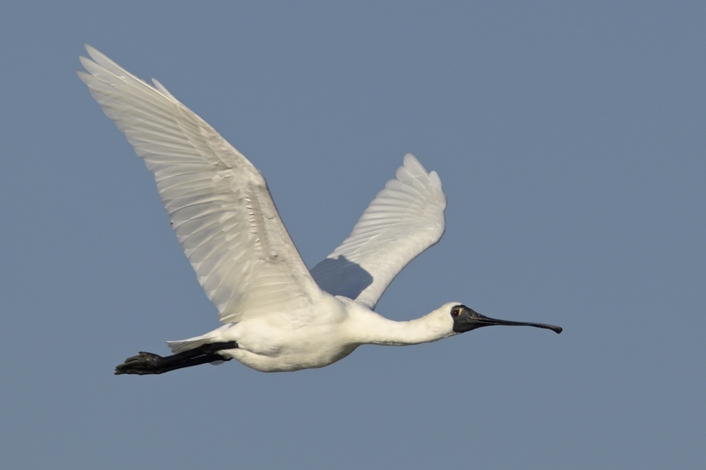 「クロツラヘラサギの飛翔」 クリックで拡大します。