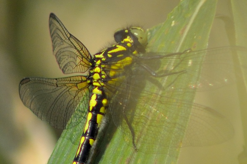 上の絵だけだとオグマサナエなのかフタスジサナエか分かりにくいので、少し横から写した絵も置いておきます。羽の影があって少しわかりにくいですが、「フタスジ」にはなっていないことがわかるかと思います。