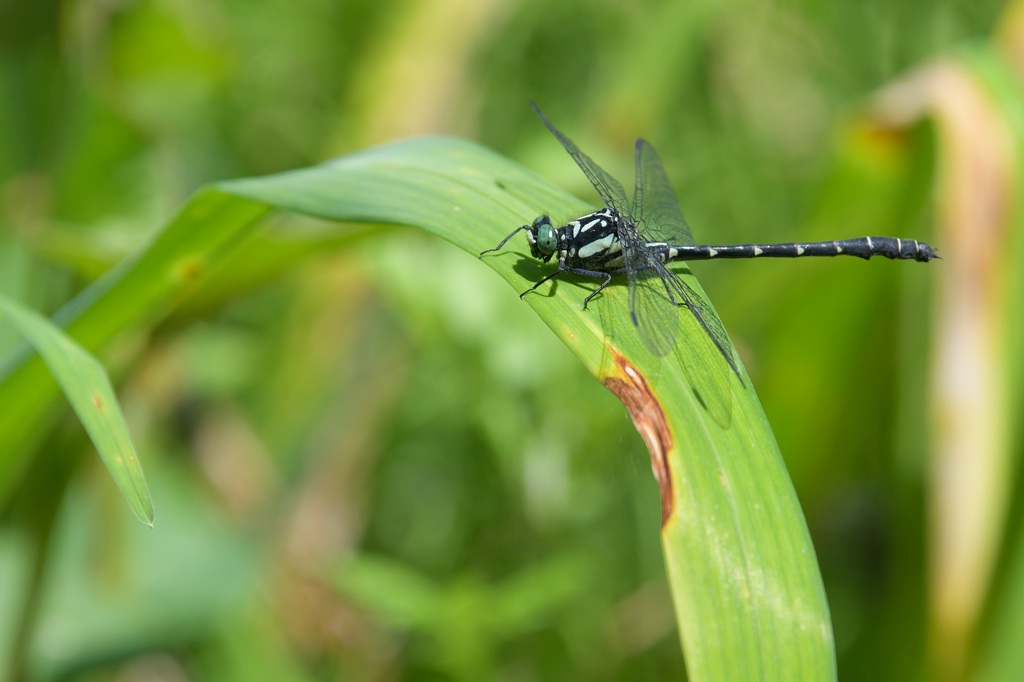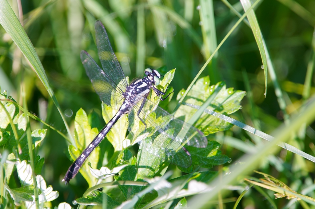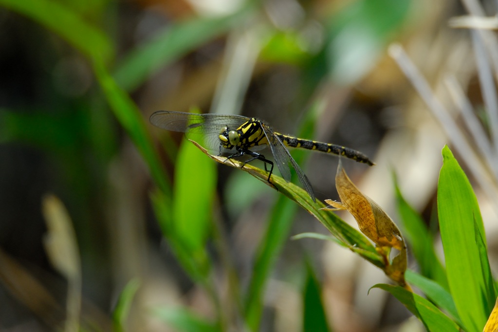 2024年のGW、横浜から大阪までバイクで移動することとなり、富士川から岡崎までは下道(バイパス)で移動することとしました。途中の静岡と愛知の1か所ずつでトンボ観察をはさみ、池や湿地で初夏のトンボを探したてみたところ、愛知の湿地でこの小さなサナエトンボを見つけました。