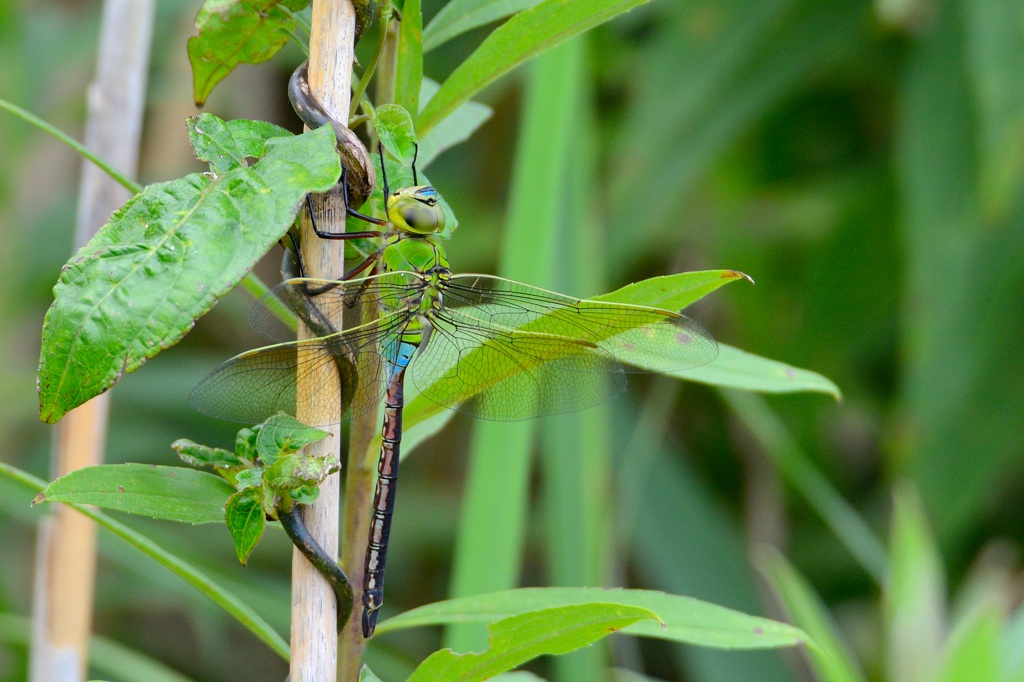 ウチワヤンマのペアです。こうやってみると雌雄の見た目の差は小さいですね。