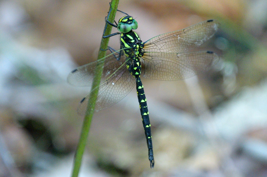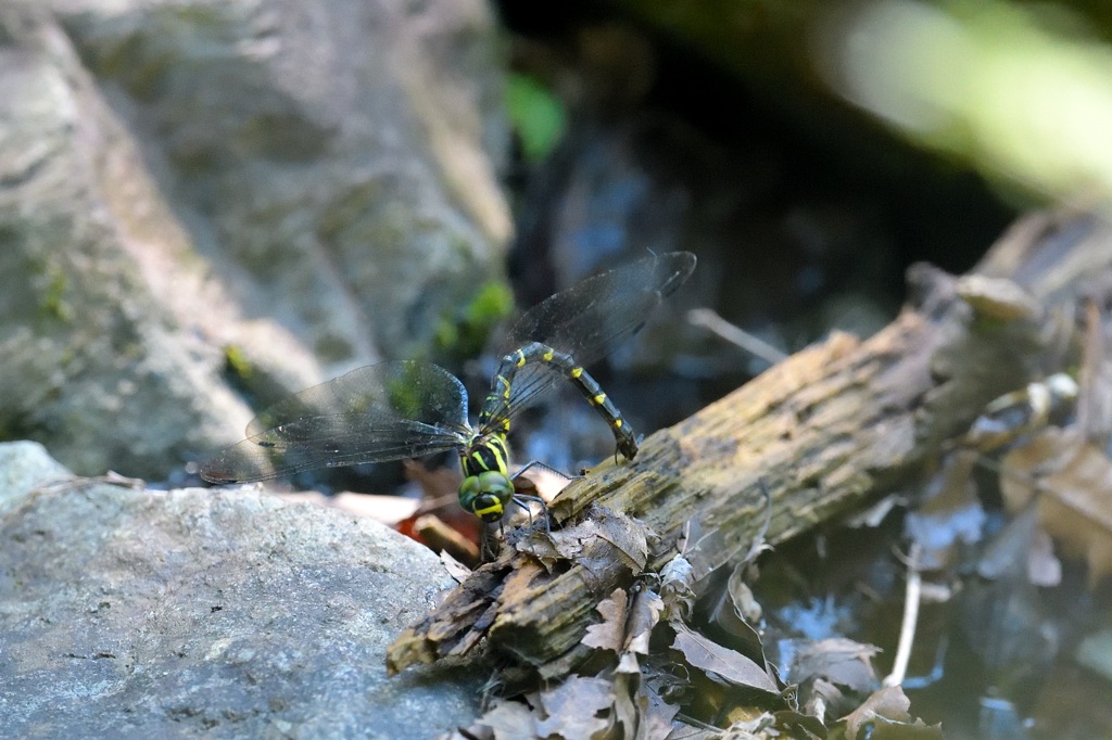 このトンボは他のトンボと違って、ヤゴは池や川で育つのではなく、清水が岩肌を伝うような場所に穴を掘って過ごすのだとか。当然山深く、湿った場所でしか繁殖できないので、街ではまず見られないトンボとなります。