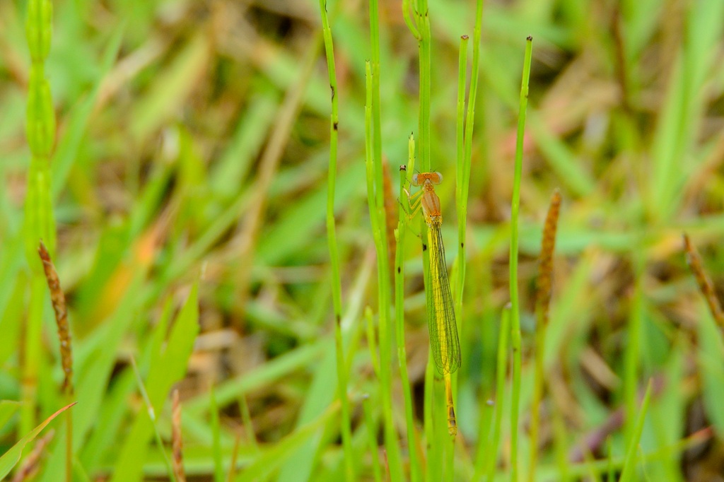 セスジイトトンボとの出会いは11年ぶりでした。今回はあまりに久々だったこともあり、現場では何イトトンボなのかがわかりませんでした。「何かしら普段あまり見かけないイトトンボの ♀ だろう」ことはわかりましたが、現場がとても暑かったためあまり深追いせず、♂ を見つけるには至りませんでした。