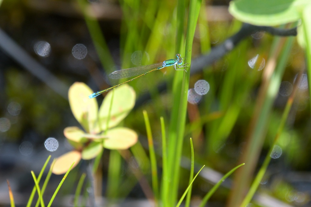 カラカネイトトンボは群馬県の高原湿原で見つけた小さくてとてもきれいなイトトンボです。本種に関しては、何かを狙って探すわけでもなく、ただ下を向いて歩き続けていたら偶然見つけた、という感じで、かなりのラッキーに部類される出会いだったと思います。(国内では純絶滅危惧種 NT)