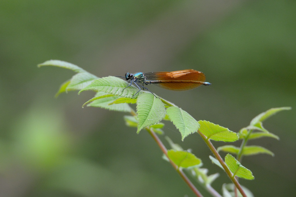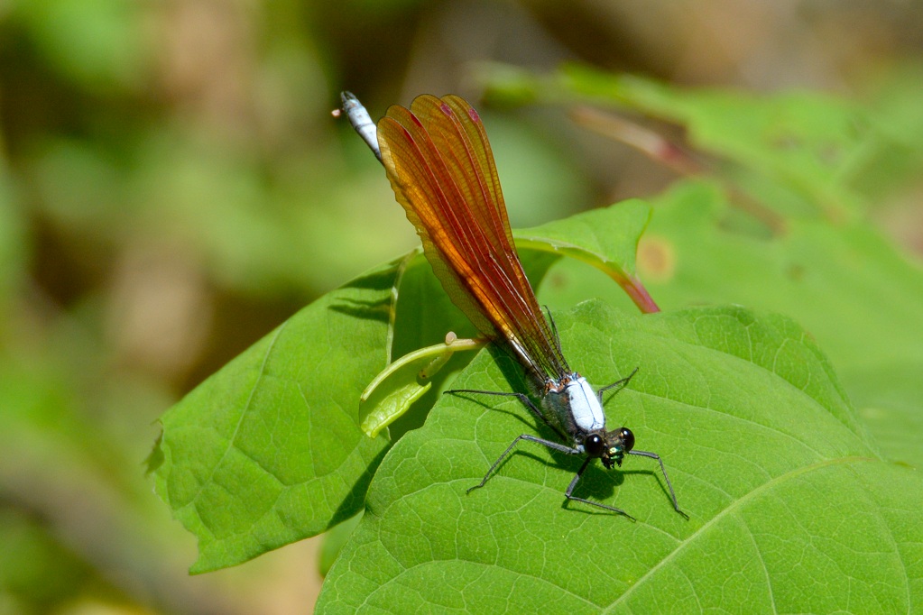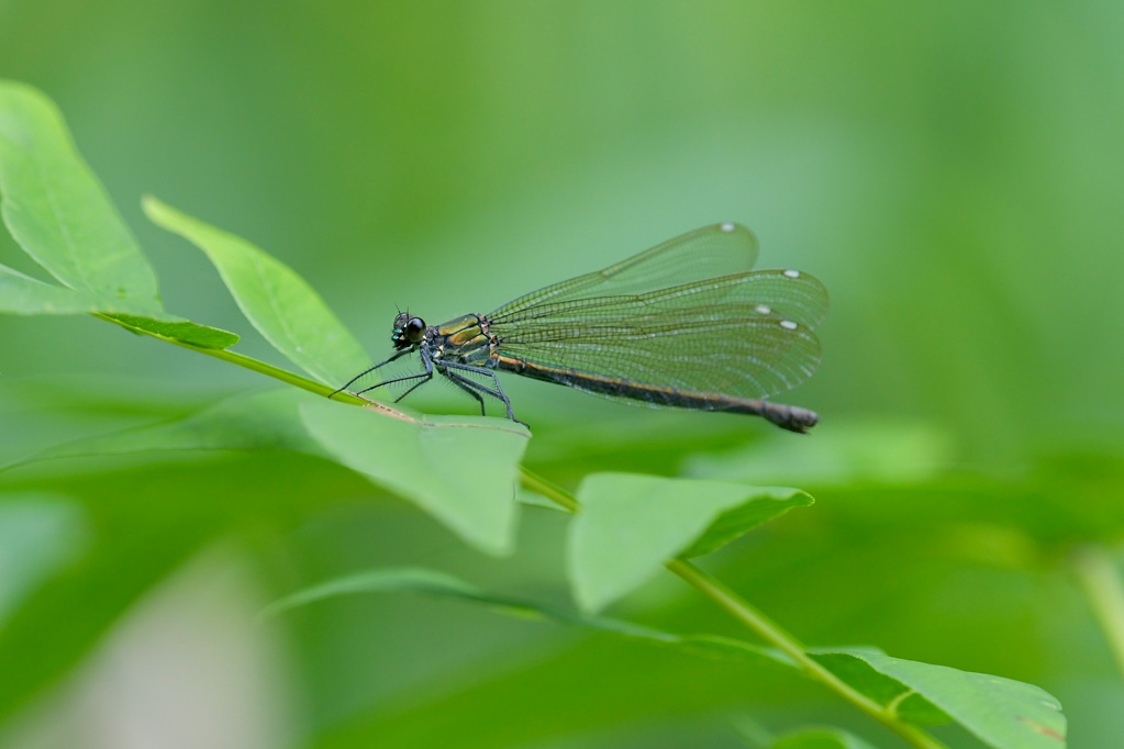 カワトンボ科は春から夏にかけて、水辺でひらひらと涼し気にゆっくりと飛ぶ大型のイトトンボです。一般的なイトトンボと比べると倍ほど大きいので、「イトトンボ」というとちょっとイメージが合わないかもしれませんが、分類上はイトトンボの仲間となります。カワトンボの仲間では一般的には夏に川で水遊びをしているときによく見かける、黒い羽をしたハグロトンボが一番有名かもしれません。